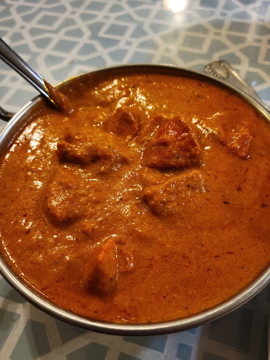Vegetarian options like saag paneer and malai kofta add variety, and side snacks such as samosas or pani puri lend a tangy, crisp contrast. The presence of traditional drinks like mango lassi or chai rounds out the meal, offering familiar comfort with a South Asian twist.